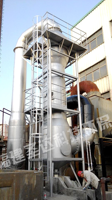 不銹鋼脫硫塔、干式導流管除塵器及自動加藥設備。