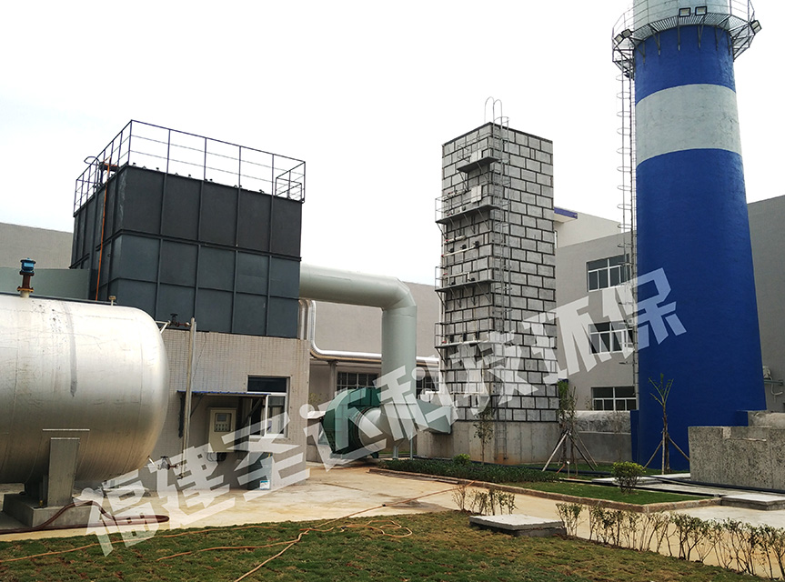 ?鏈條爐配套臭氧脫硝設備、兩臺濕式電除塵器、不銹鋼脫硫塔、花崗巖脫硫塔、及自動加藥設備。